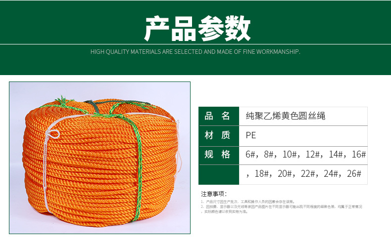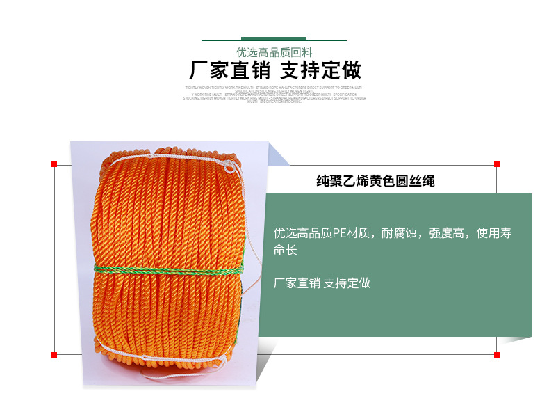黃色圓絲塑料繩 戶外作業(yè)PE尼龍繩 黃繩 剎車?yán)K